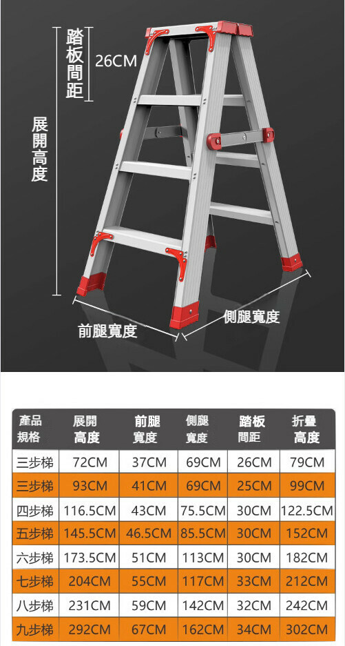熱推【1件裝】多功能鋁合金折疊梯(基礎雙筋加固款-全鋁2.4米)