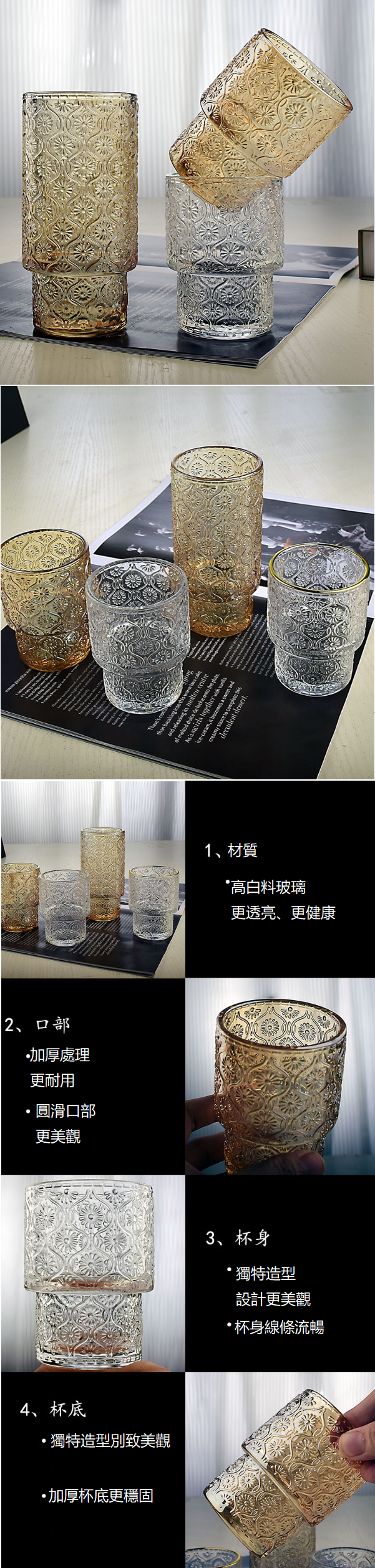 熱推【1個】玻璃疊疊杯水杯(容量/貨號:300ml琥珀)