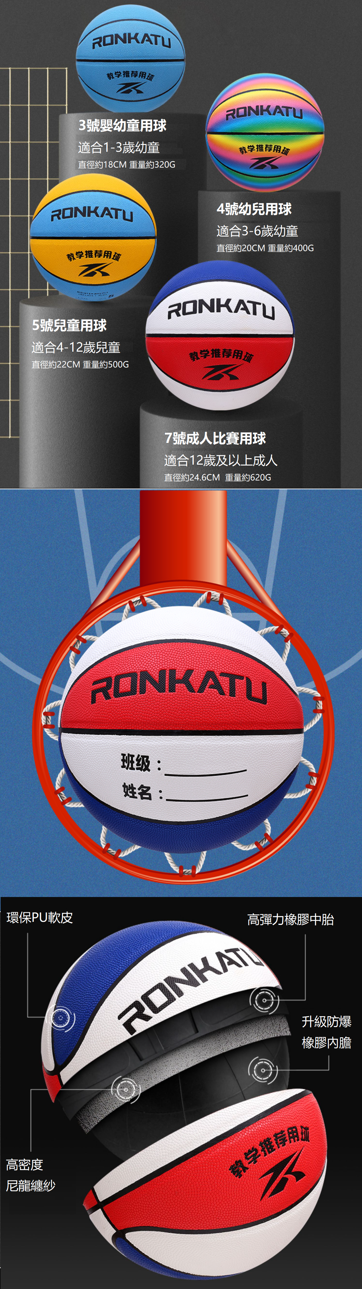熱推【1個】5號籃球(顔色:七彩色 材質:PU 氣筒氣針網兜)