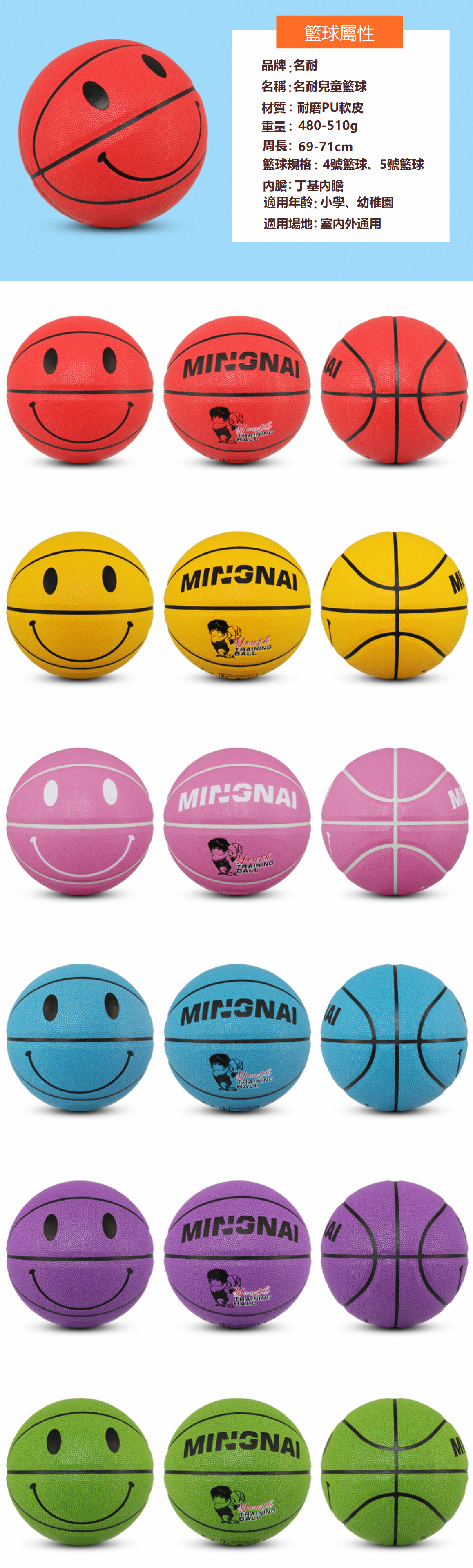 熱推【1個】5號笑臉籃球(顔色:黃色 材質:PU 氣筒氣針網兜)
