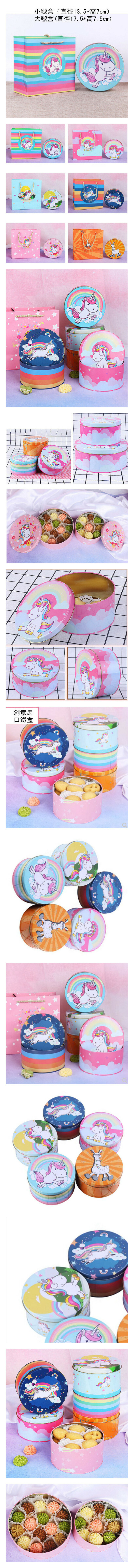 熱推【10個】創意馬口鐵盒-小馬D款圓形-大號套裝【大號盒子(直徑17.5*高7.5cm)+手提袋】