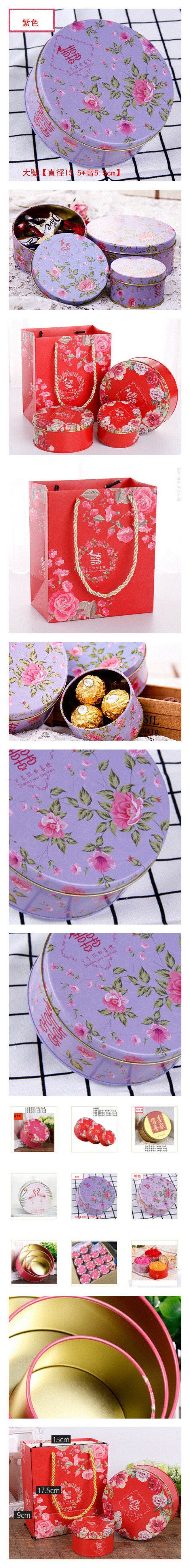 熱推【10個】創意喜糖盒子空盒-粉色-大號【直徑13.5*高5.5cm】+紅色手提袋