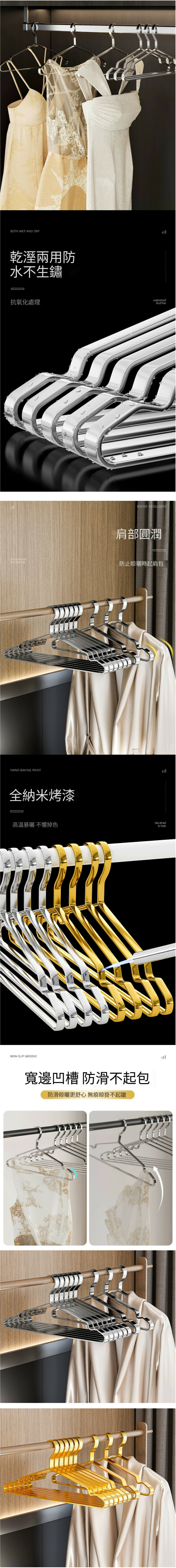 熱推【10個装】家用掛衣架【40cm標準款【水晶銀】加寬不鏽鋼扁條衣架】