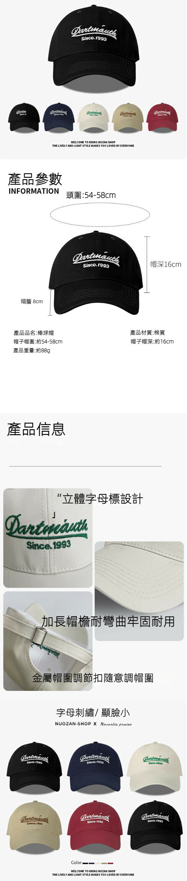 熱推1993字母刺繡軟頂鴨舌帽(360咖啡色)