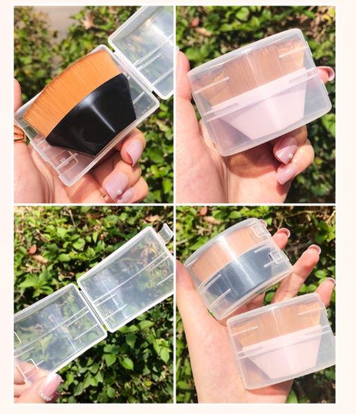 熱推2個魔術無痕粉底刷不喫粉扁頭化妝師刷收納盒(黑色+粉色)