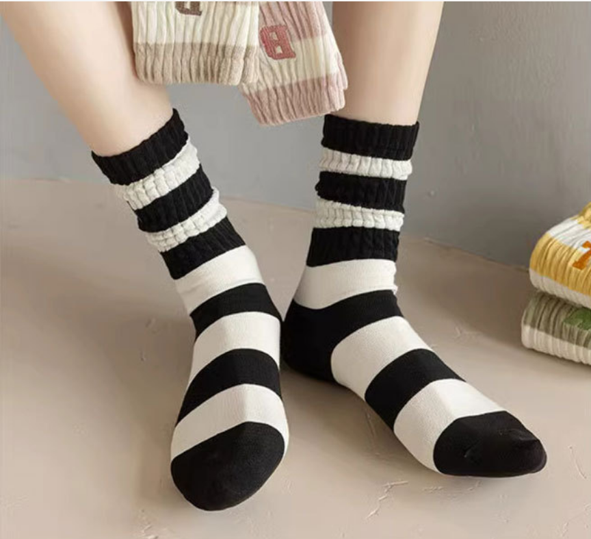 熱推(2雙裝)女日繫條紋刺繡堆堆襪(字母M)(均碼)