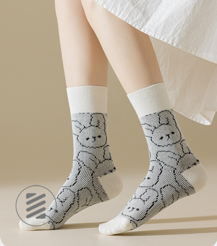 熱推(2雙裝)女吸汗不勒腳刺繡堆堆襪(藍色花朵)(均碼)