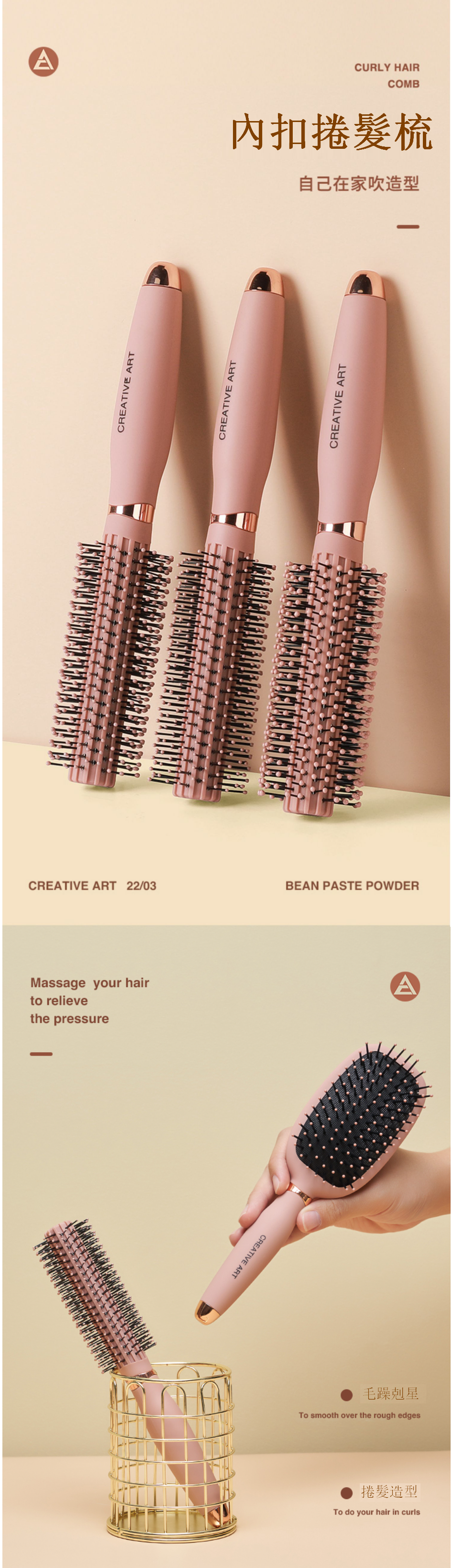 熱推【2件套】捲髮梳內扣(捲髮梳+氣墊梳(豆沙粉))