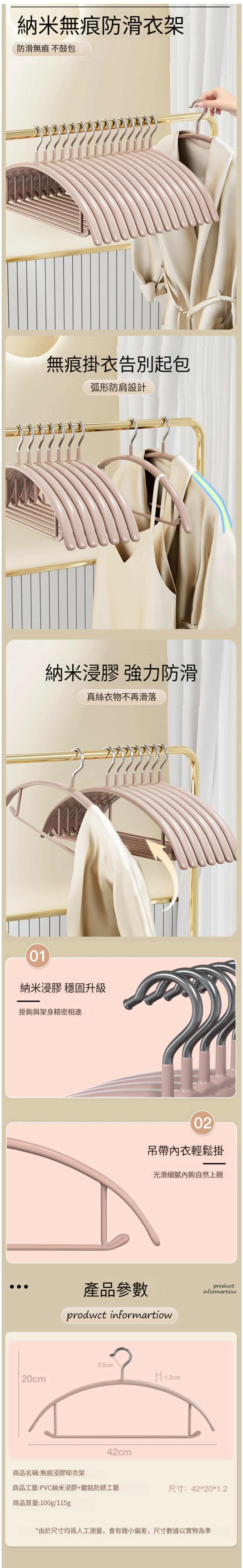 熱推【20個裝】家用掛衣架【納米無痕+防滑(慕斯粉)】