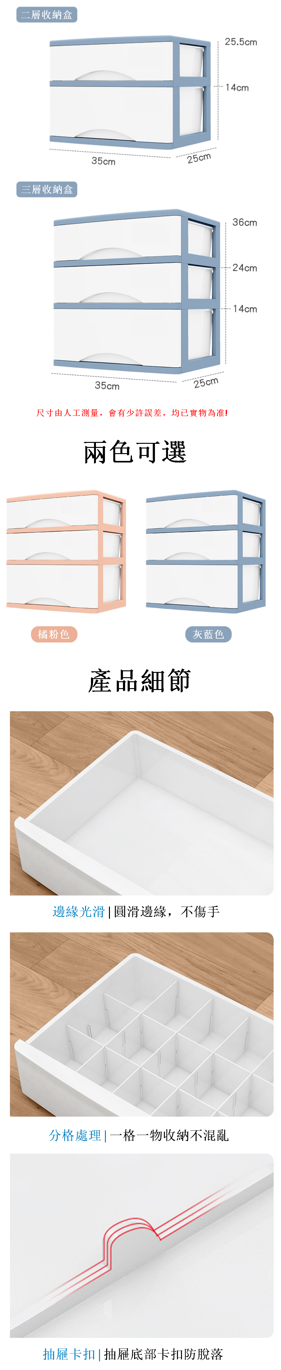 熱推【3層】家用抽屜式分格收納盒(橘粉色)