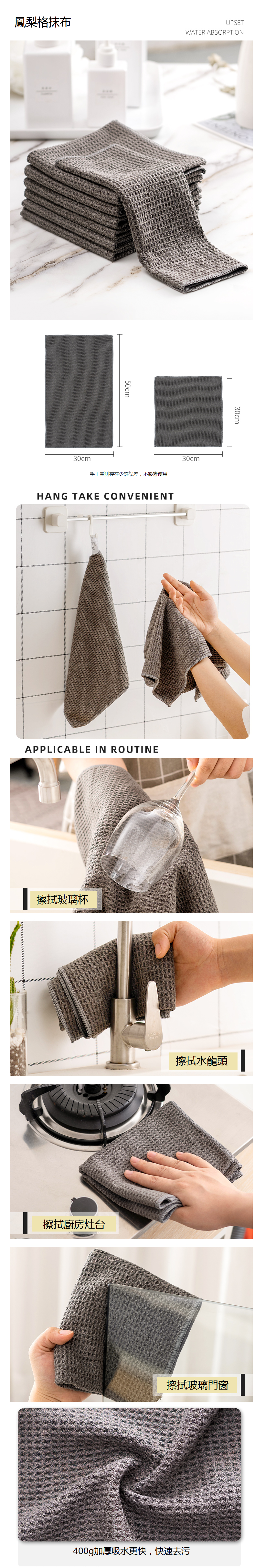 熱推【3條裝】廚房毛巾洗碗擦桌布(深灰-小號)