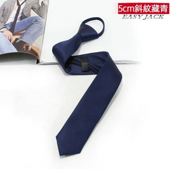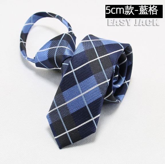 熱推5cm窄版拉鍊領帶(藍格)