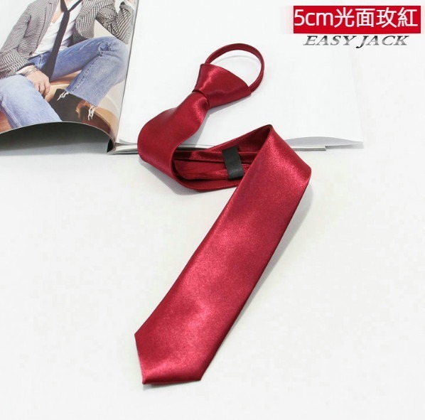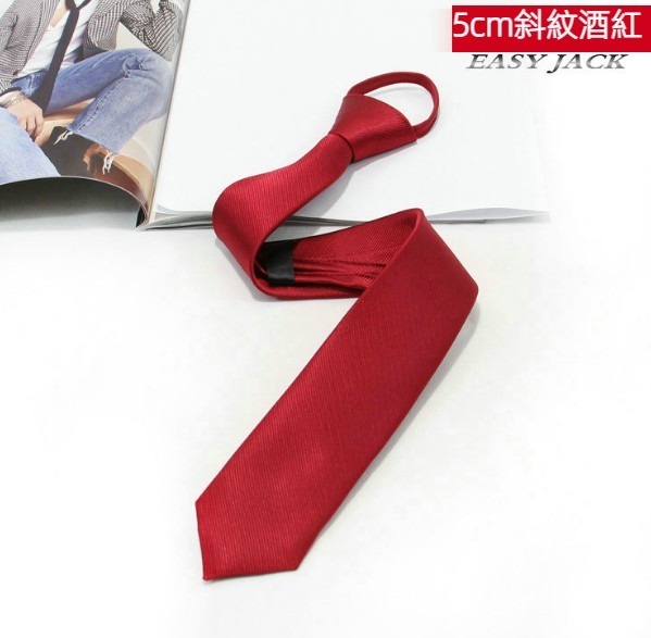 熱推5cm窄版拉鍊領帶(紅條)