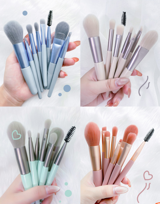 熱推8支迷你便攜全套化妝刷化妝掃(奶油杏)