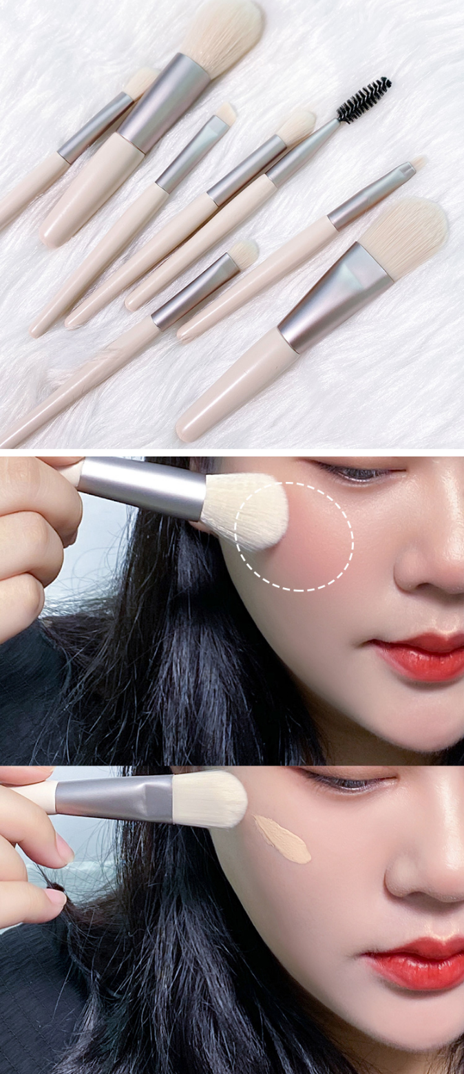 熱推8支迷你便攜全套化妝刷化妝掃(裸粉色)