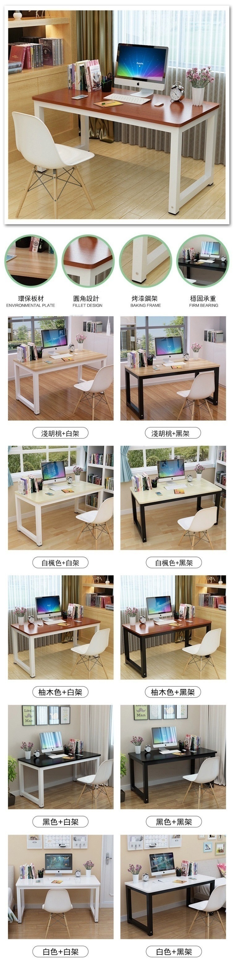熱推電腦桌簡易書桌家用臥室學習桌學生桌簡約辦公桌子(黑色+白腳)140x80x74cm