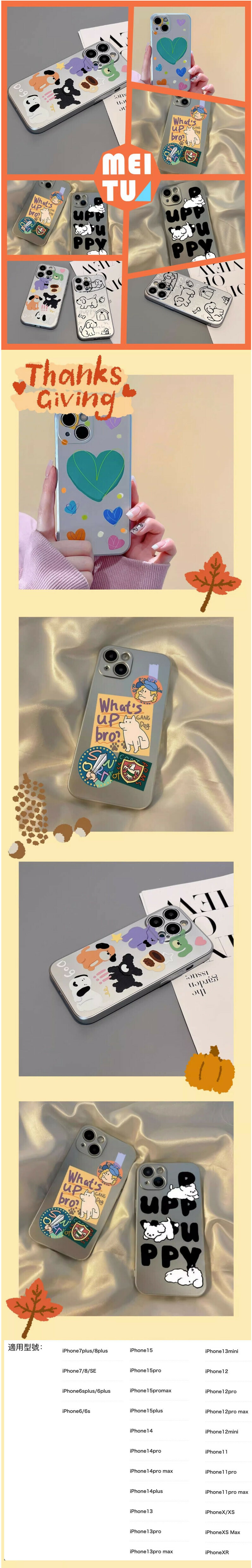 熱推可愛小狗彩繪金屬適用於iPhone系列手機殼(磨砂銀大綠愛心)(下單後聯絡客服確認手機型號)