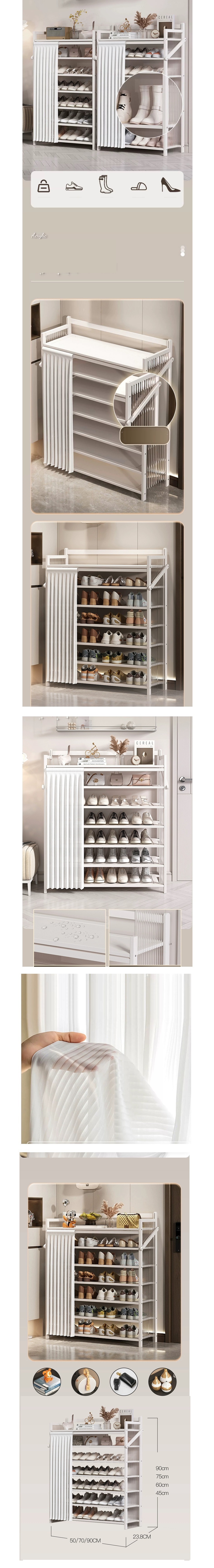 熱推折疊簡約多層鞋架(波浪板-月白-加高靴架款5層50*23.8*105CM)