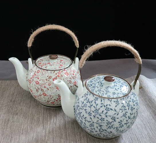 熱推家用大容量陶瓷泡茶壺(小藍花1.2升銅把手單壺)