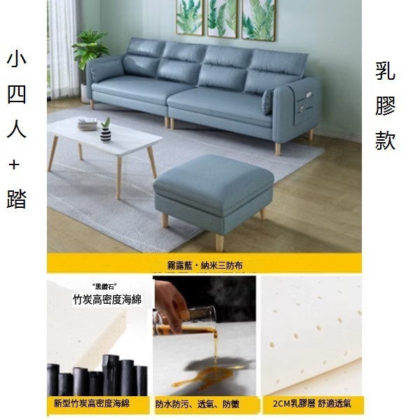 熱推小戶型沙發(竹炭【霧霾藍】-透氣納米三防布)(小四人+踏【乳膠】2.3米)