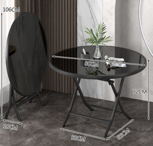 熱推家用小戶型圓形折疊餐桌(鋼化玻璃面)(尺寸:展開80*72*58*66CM,折疊106*18CM)