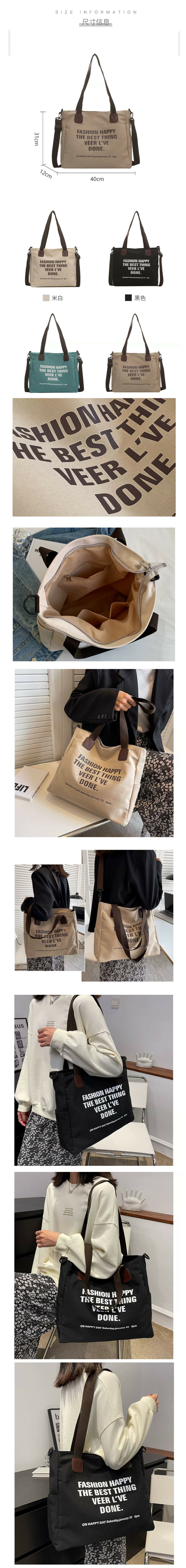熱推大容量休閒單肩包 帆布通勤手提包(米白色)