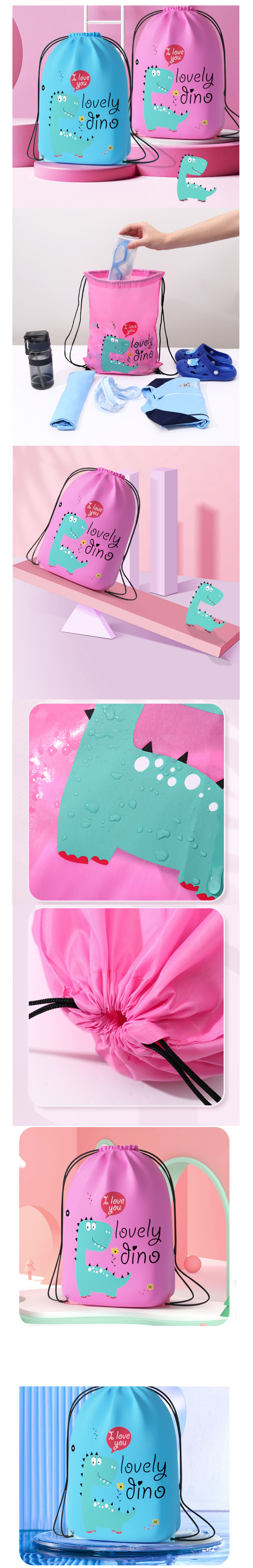 熱推可愛男女防水束口兒童游泳包(粉色小恐龍+泳鏡+浴袍)