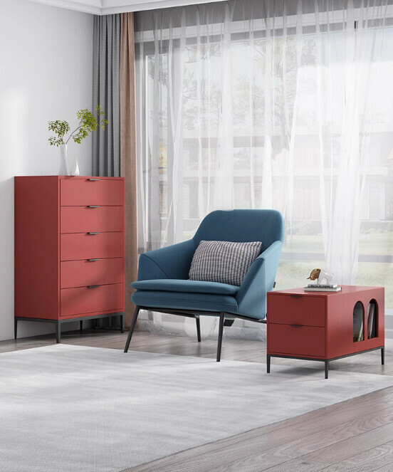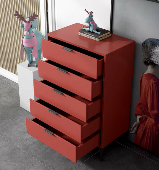 熱推臥室客廳一體腳五斗儲物櫃(磚紅色)
