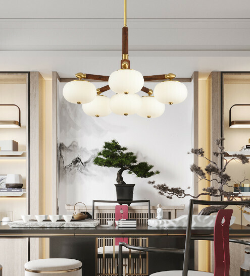 熱推簡約中式LED燈具(6+1頭 吊燈 56W 三色變光)