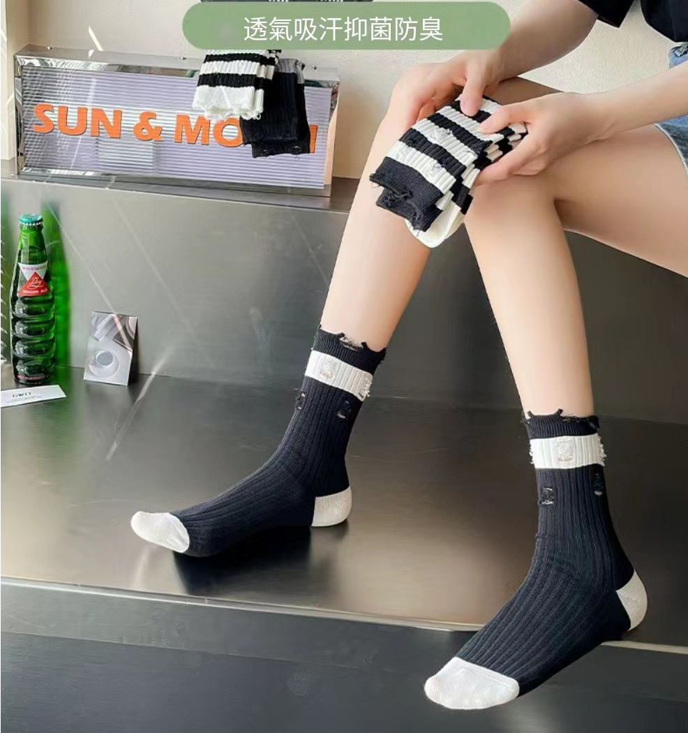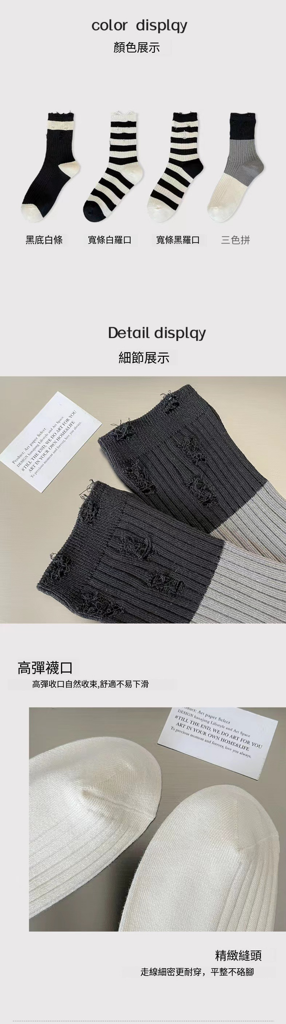 熱推(10雙裝)條紋破洞粗針中筒襪(寬條白羅口)(均碼)