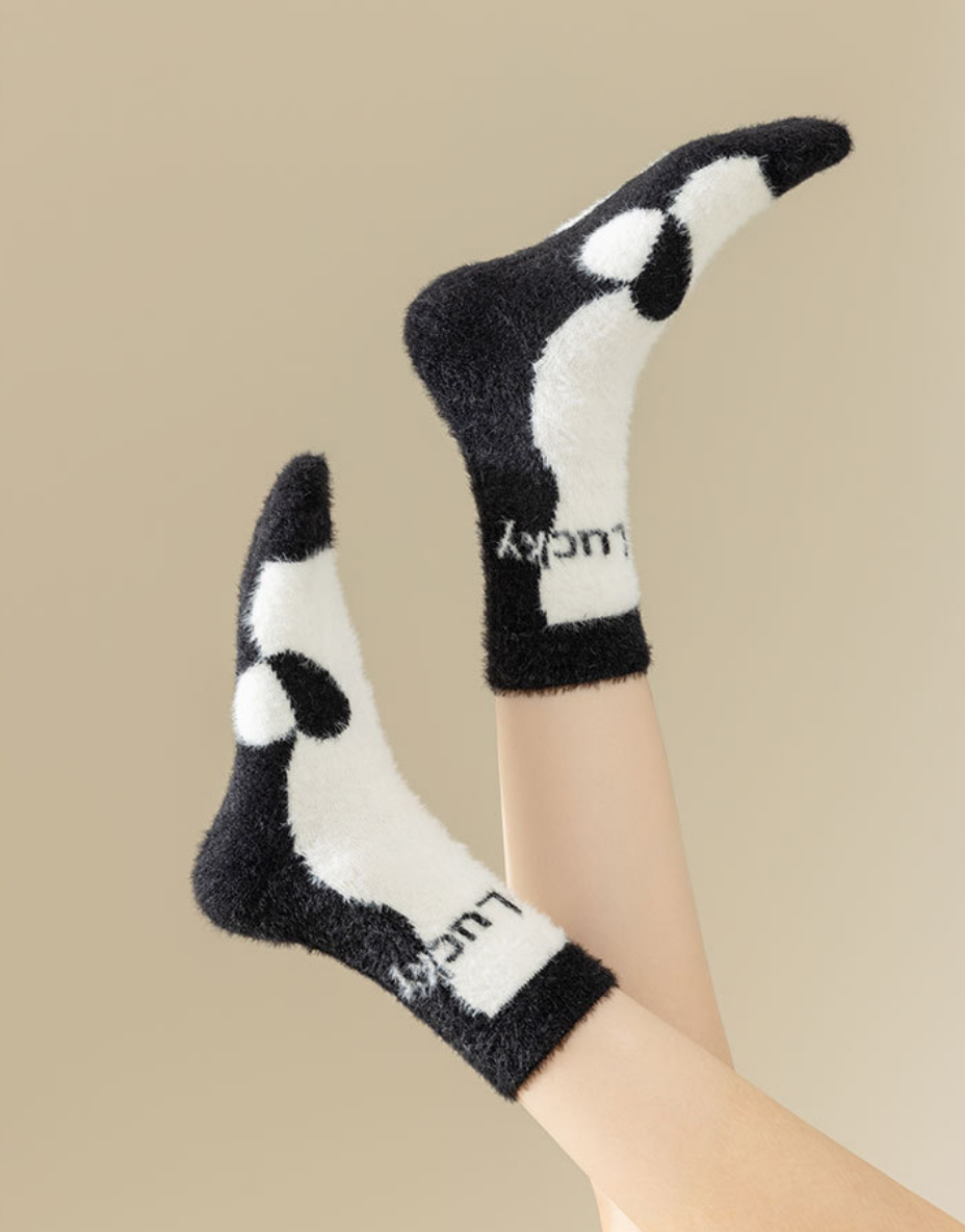 熱推(2雙裝)女加厚加絨貂絨中筒襪(方塊點)(均碼)