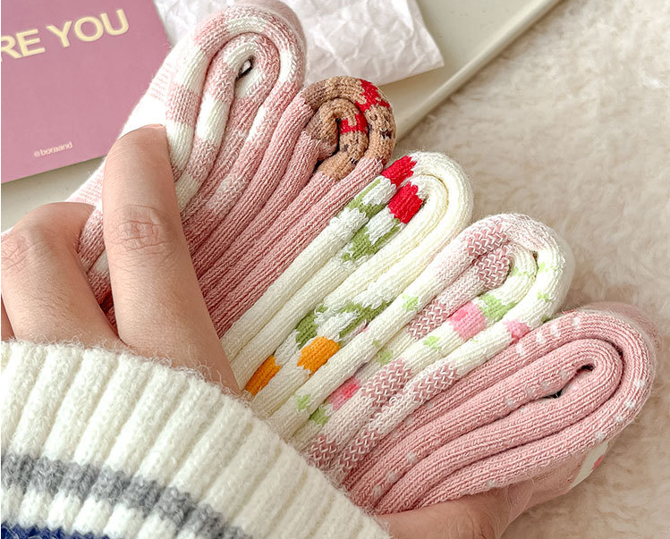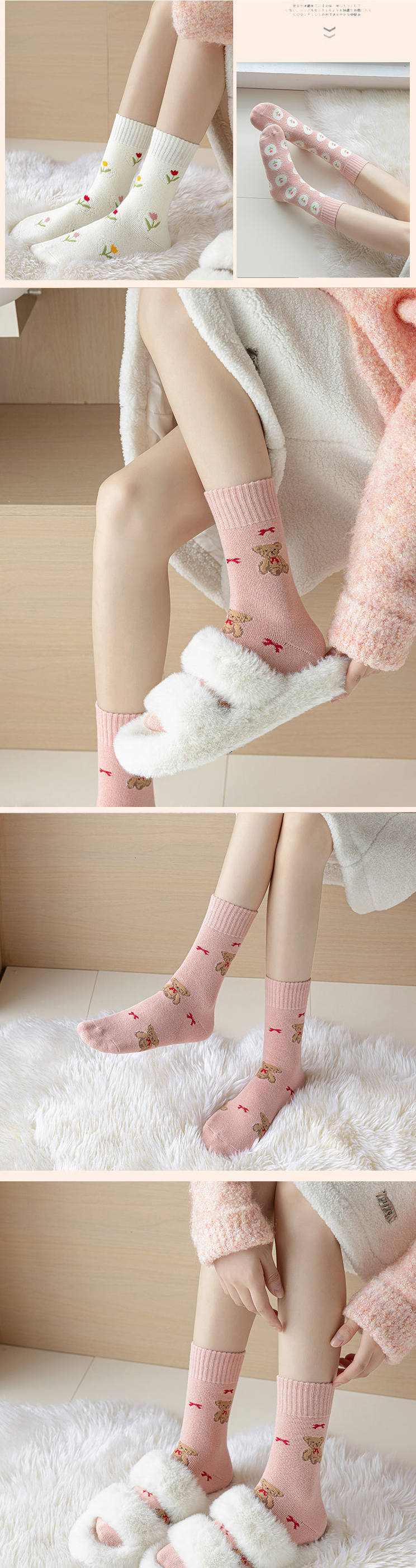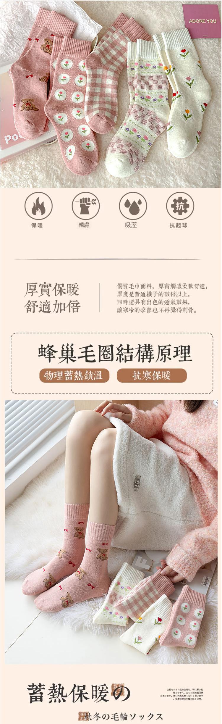 熱推(2雙裝)女加厚保暖中筒毛圈襪(花環)(均碼)
