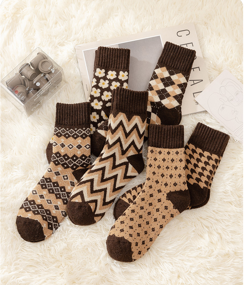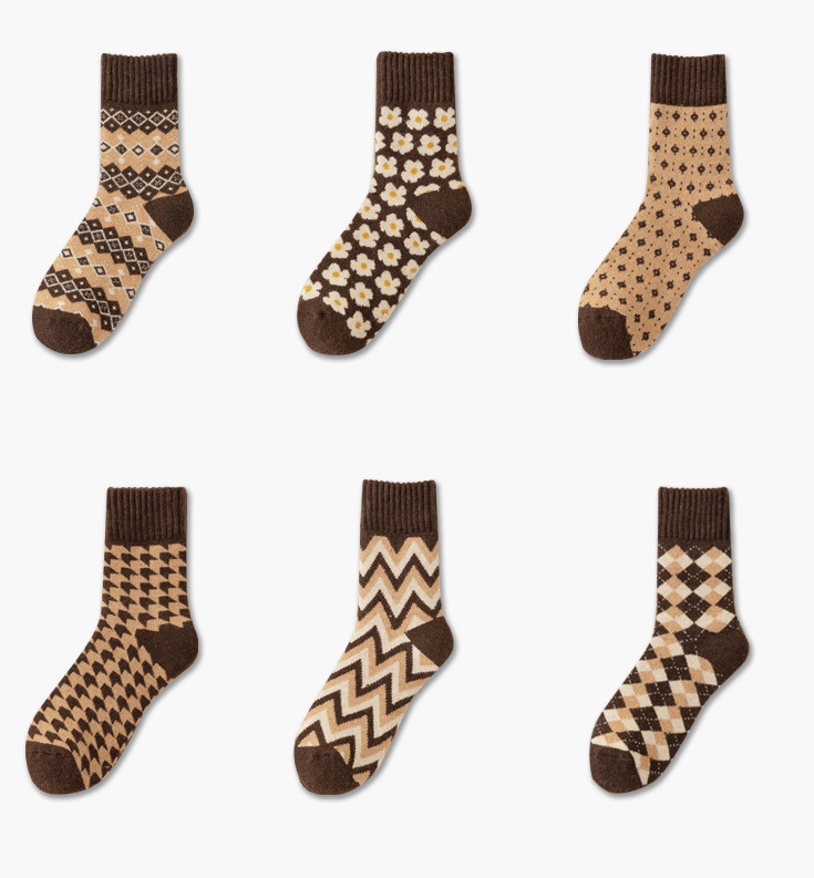 熱推(2雙裝)女加厚羊毛中筒襪(花朵)(均碼)