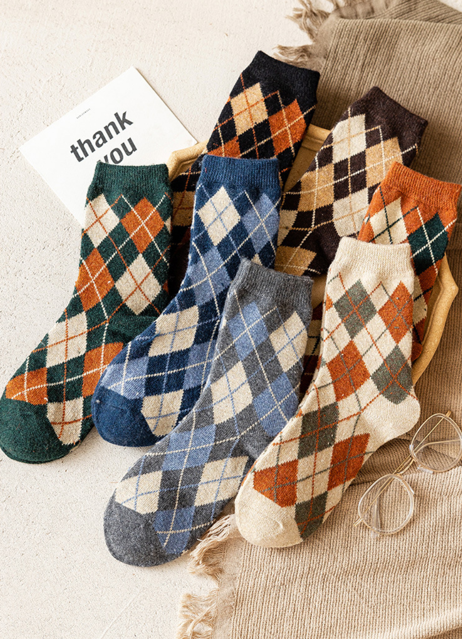 熱推(2雙裝)女復古英倫風菱格形中筒襪(黑色)(均碼)