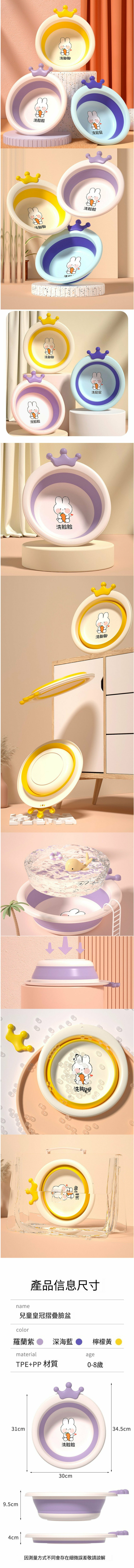 熱推【3個裝】嬰兒洗臉盆【兔子皇冠折疊臉盆【紫色】+【藍色】+【黃色】