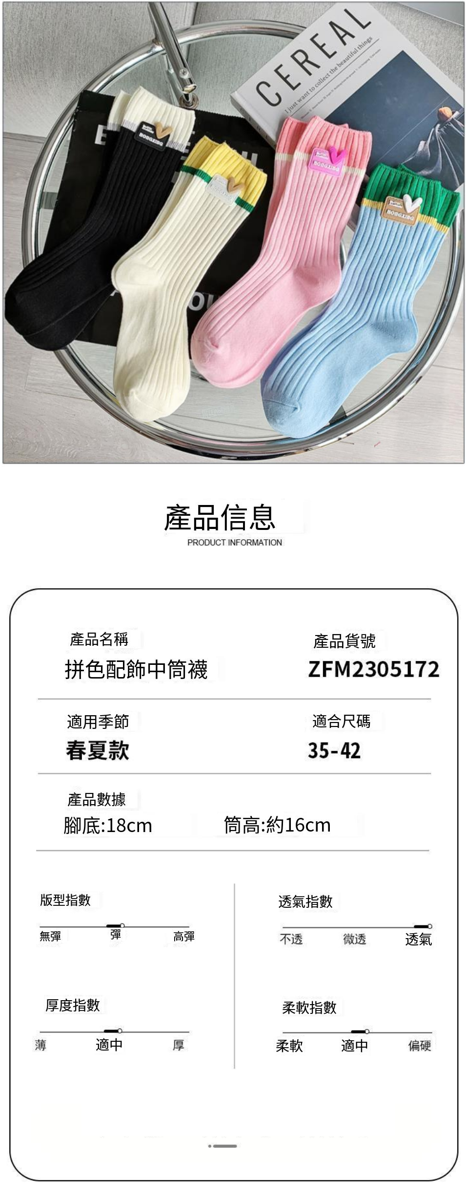 熱推(3雙裝)女用彩色拼接棉質中筒襪(黑色)(均碼)