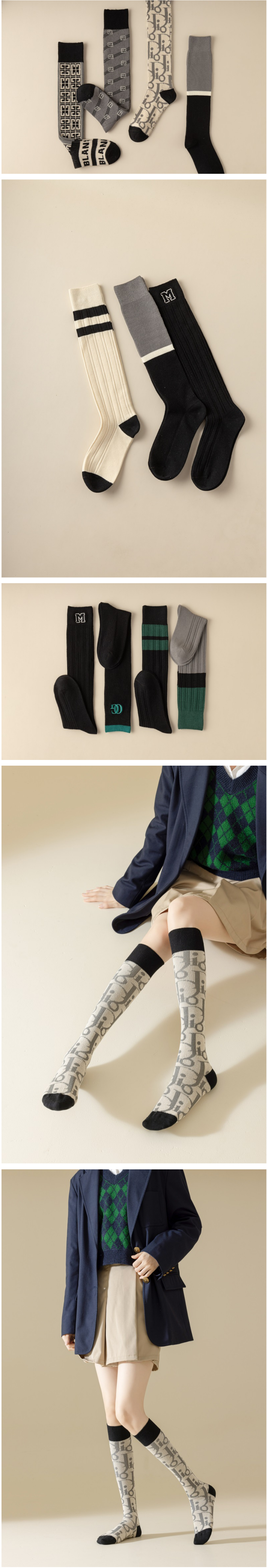 熱推(3雙裝)女小眾ins風條紋中筒襪(09綠色羅口)(均碼)