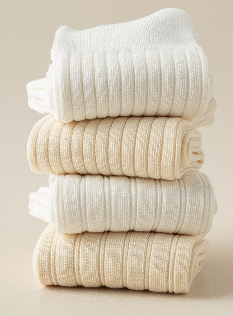 熱推(3雙裝)女純色豎條紋中筒襪(奶白-寬羅口)(均碼)