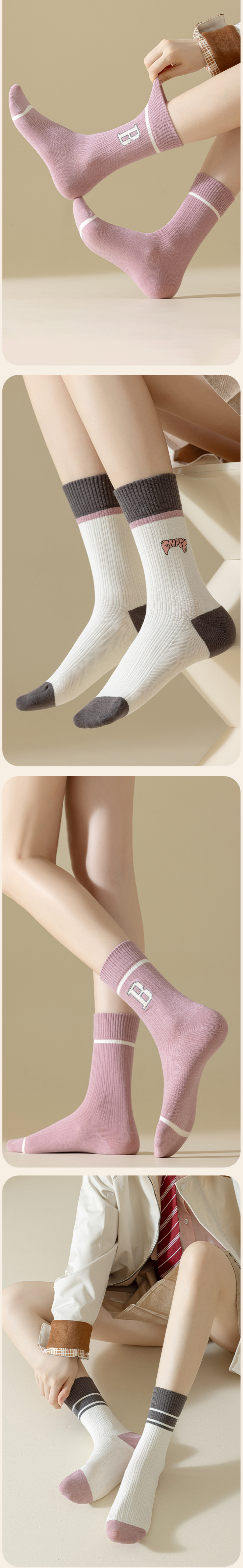 熱推(5雙裝)女日線條紋中筒棉襪(兩槓)(均碼)