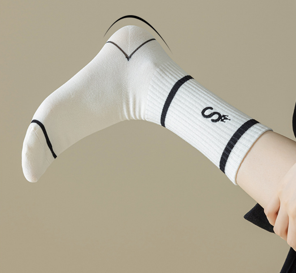 熱推(5雙裝)女條紋刺繡學院風中筒襪(羅口不條紋)(均碼)