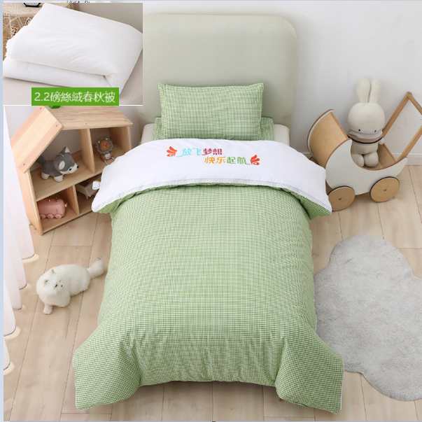熱推純棉兒童被套+墊套+枕套(寧靜小格子)(2.2磅羽絲絨六件套)