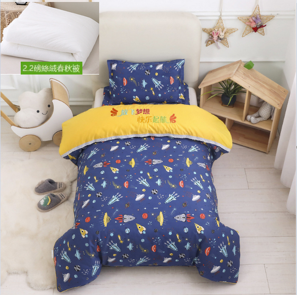 熱推純棉兒童被套+墊套+枕套(宇宙小飛船)(2.2磅羽絲絨六件套)