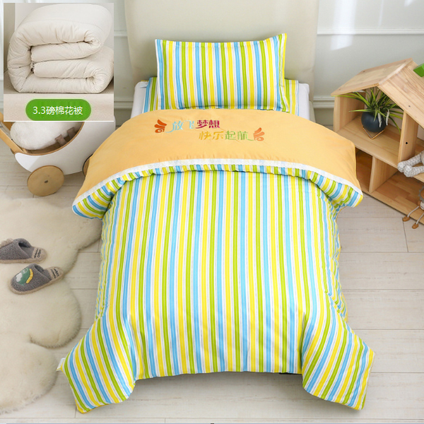熱推純棉兒童被套+墊套+枕套(黃綠小彩條)(3.3磅棉花款六件套【包布】)
