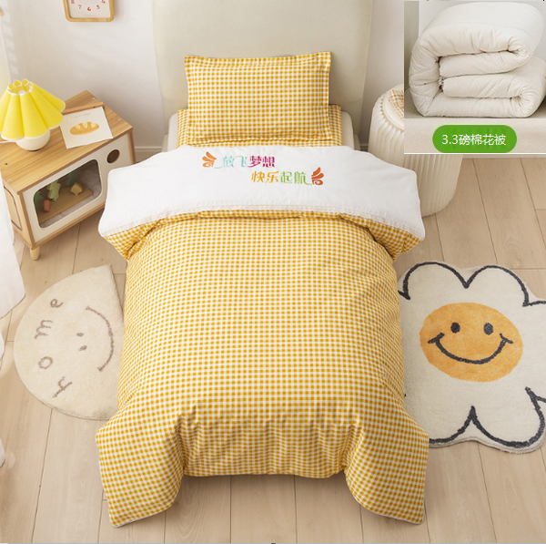 熱推純棉兒童被套+墊套+枕套(黃白小格)(3.3磅棉花款六件套【包布】)