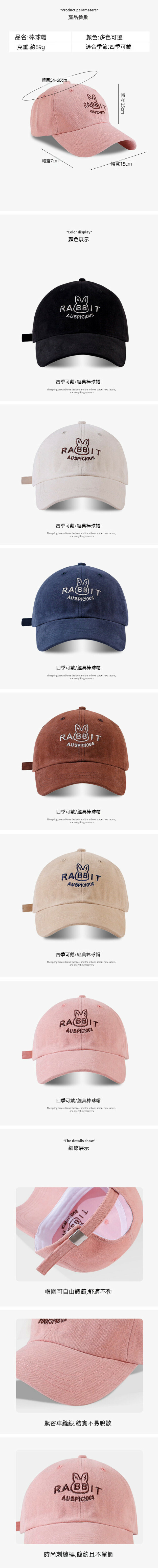 熱推RABBIT刺繡軟頂鴨舌帽(381卡其色)