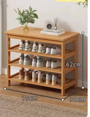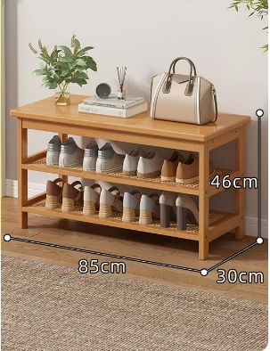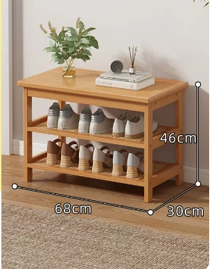 熱推簡約舒適小鞋架(三層-原木色-75CM)