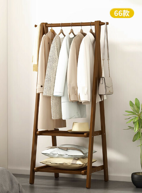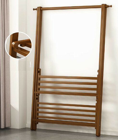 熱推簡易可折疊衣帽架(茶色雙層-116cm長)