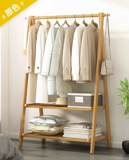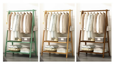 熱推簡易可折疊衣帽架(灰豆綠雙層-86cm長)