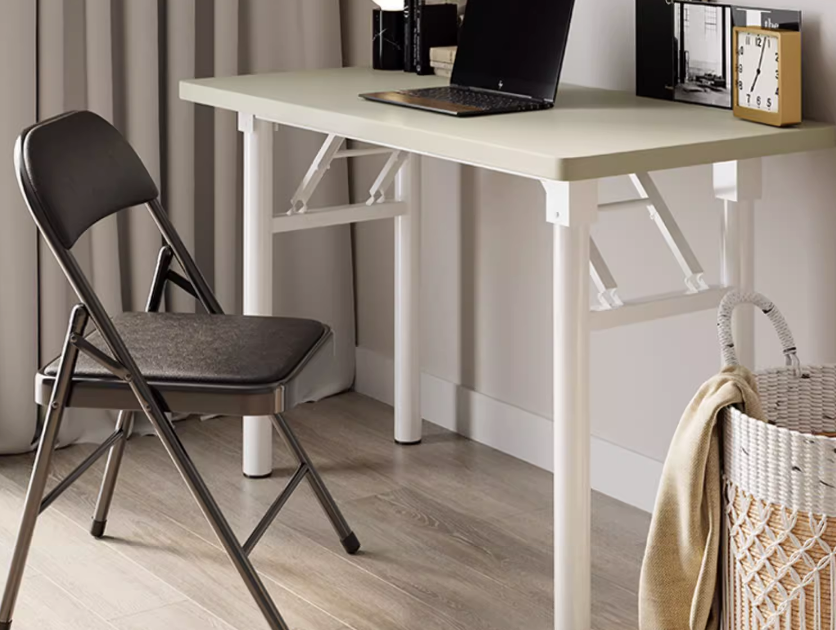 熱推簡易可折疊長方形辦公桌(黑胡桃/方管,白架)(尺寸:100*50CM)