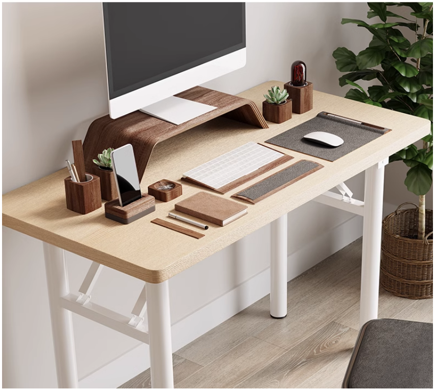 熱推簡易可折疊長方形辦公桌(黑胡桃/方管,白架)(尺寸:120*60CM)